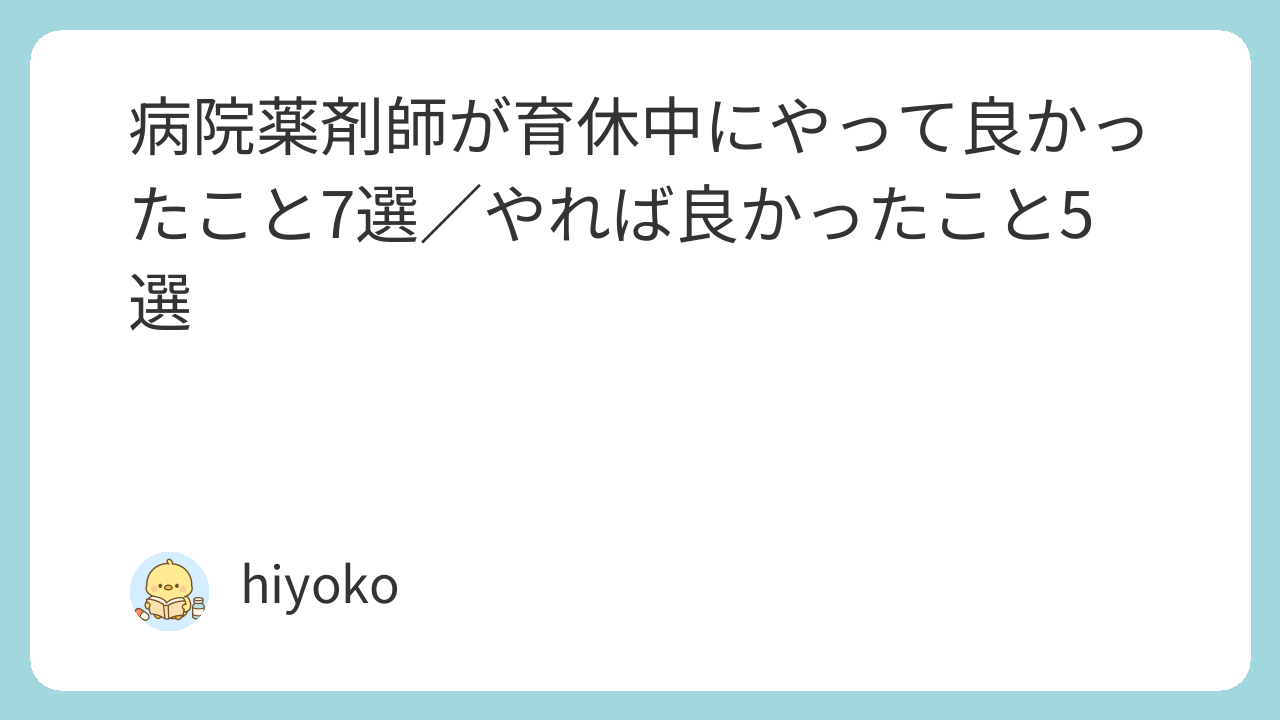 この記事が、これから復職を迎える病院薬剤師さんの「ちょっと不安が減った」「これだけやれば大丈夫かも」につながれば嬉しいです。